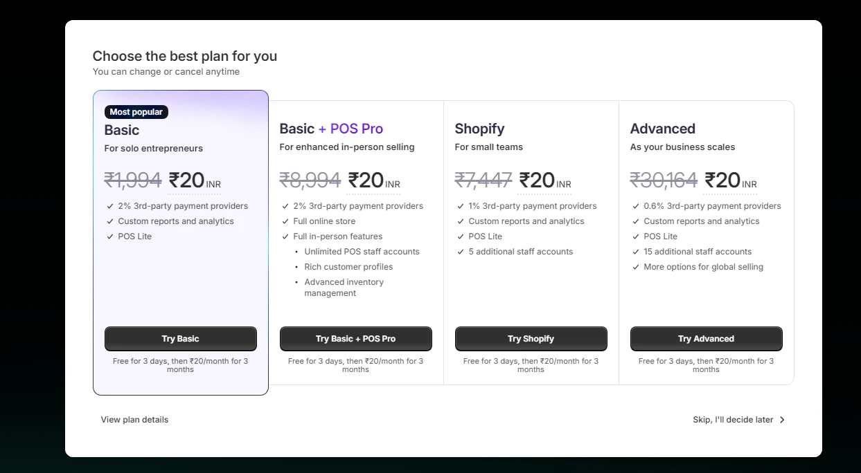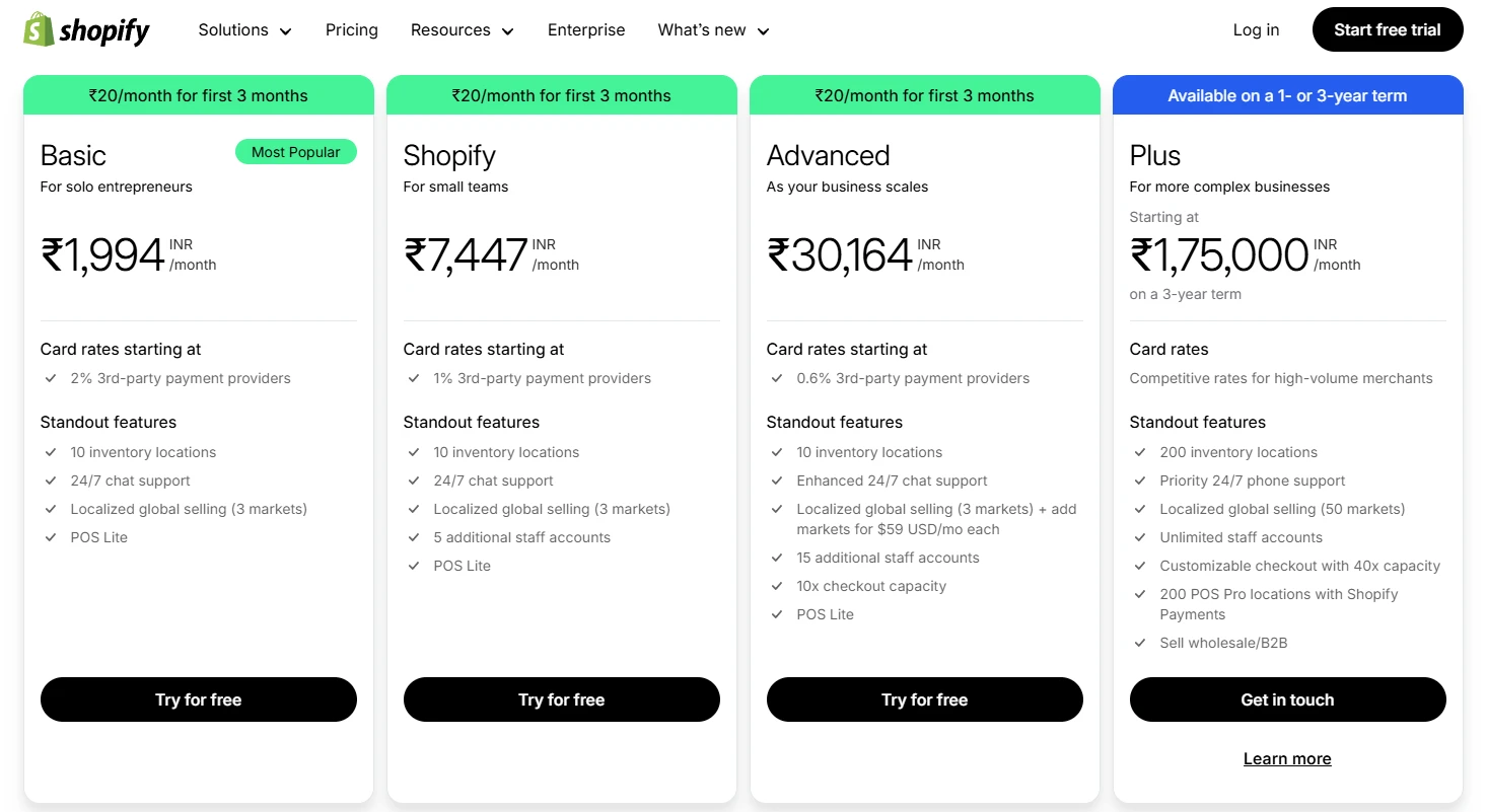 Subscription Cost & Features - Shopify Price in India