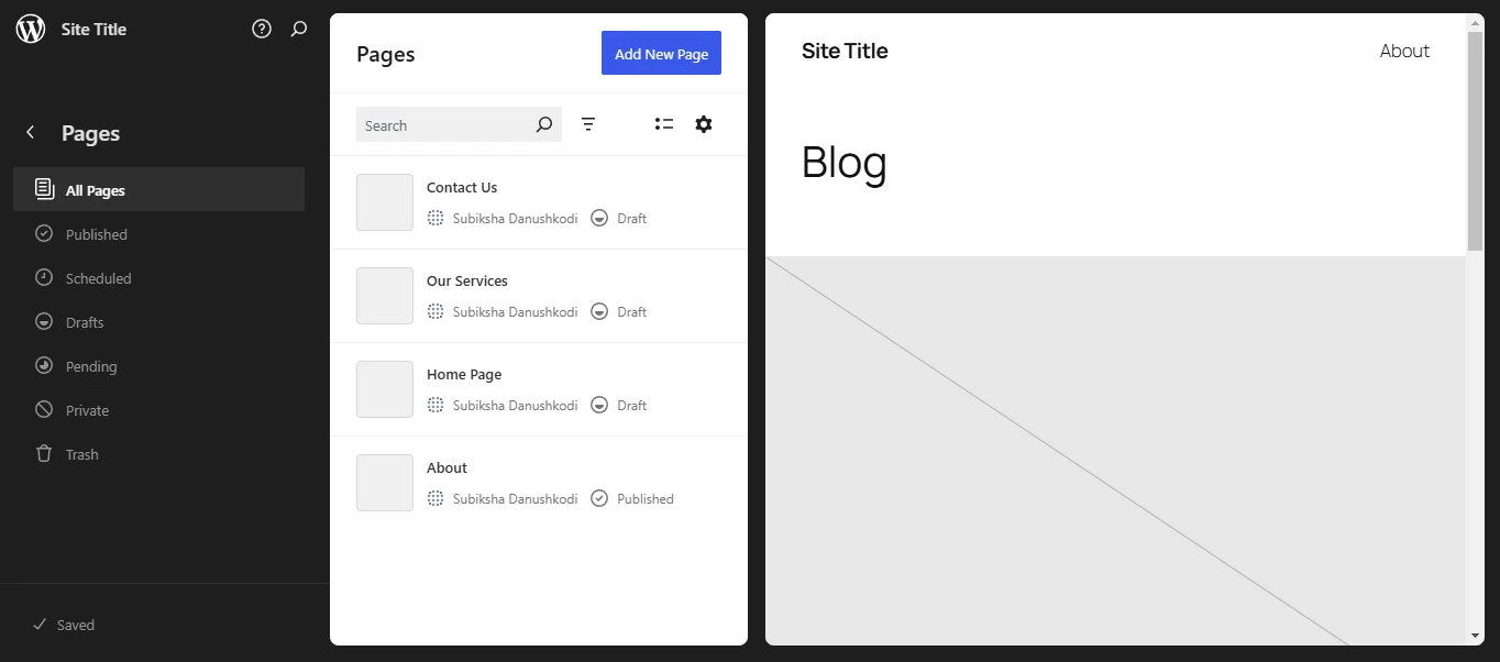 - After adding the pages, insert the required images, contents, etc. and save them. Once you have done all the editing work, publish the website.