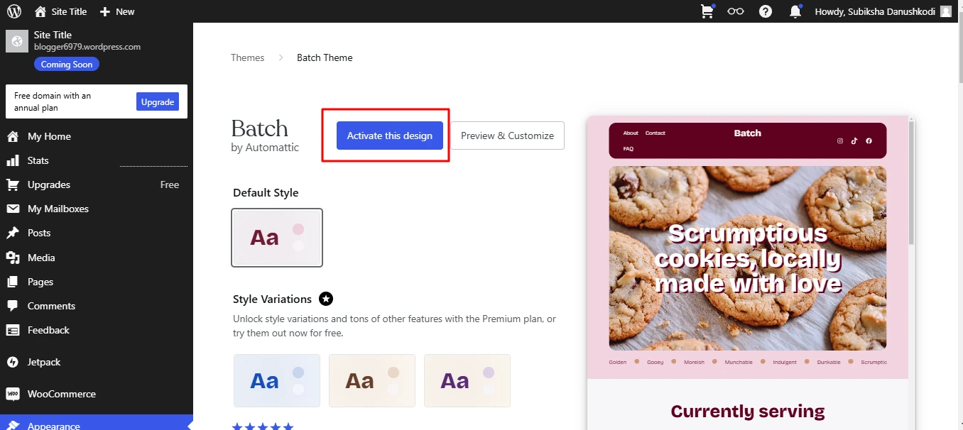 - Choose a theme you prefer and preview it. If you are fine with the template, select Activate This Design.