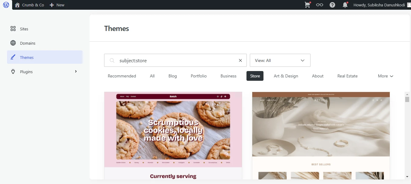 Since we have created a website for a cookie store, let's choose the category as Store.