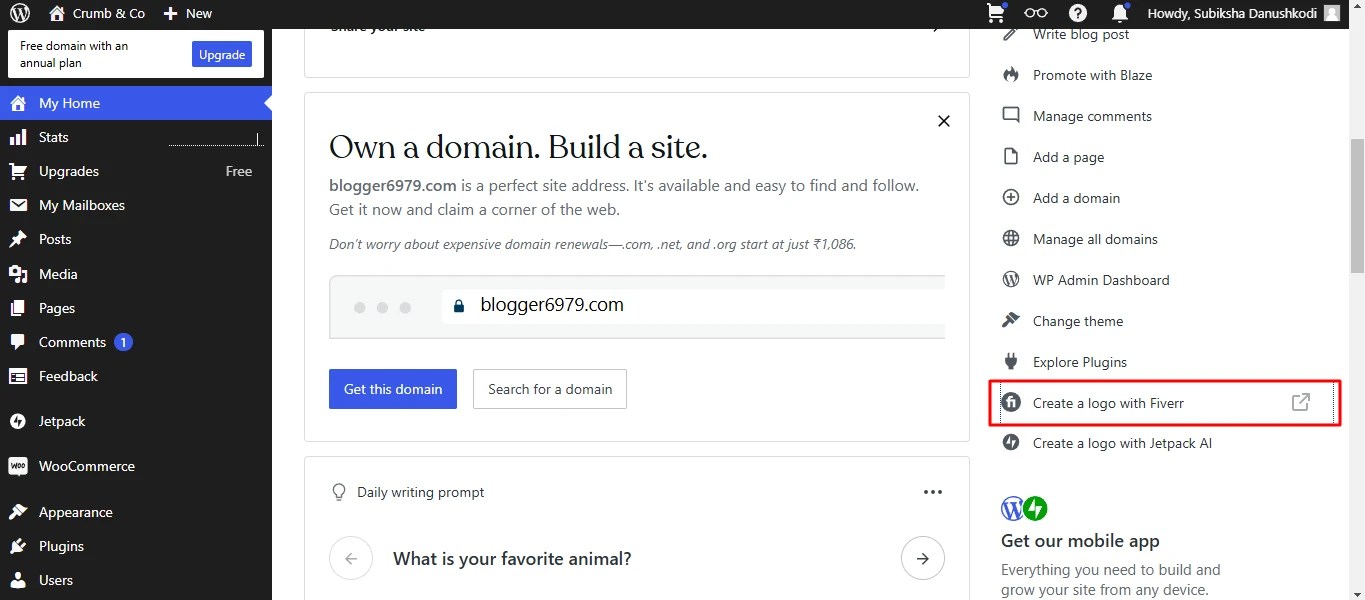 - On your WordPress Dashboard, select Create a Logo with Fiverr.