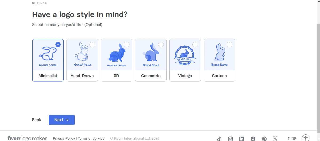 - Next, select the logo style you prefer. I am choosing Minimalistic.