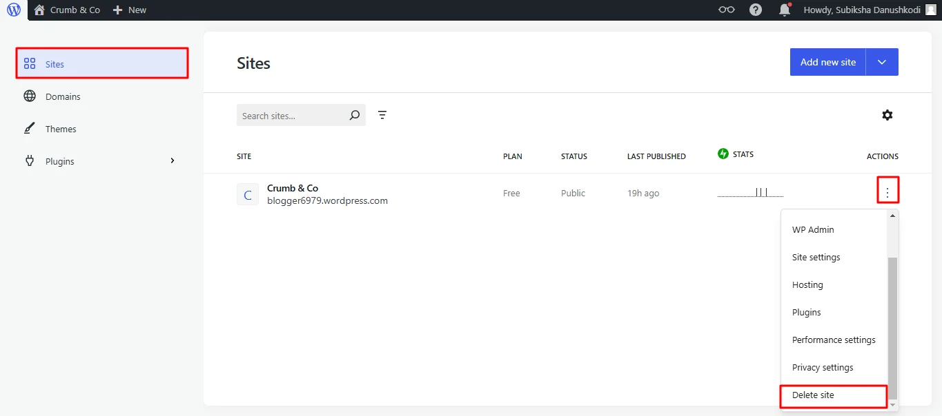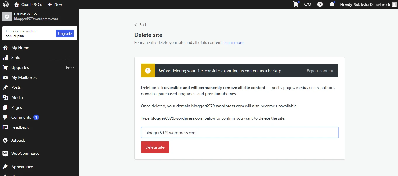 - Type your domain name again in the given box and hit the Delete Site button. Now, your site will be deleted permanently.