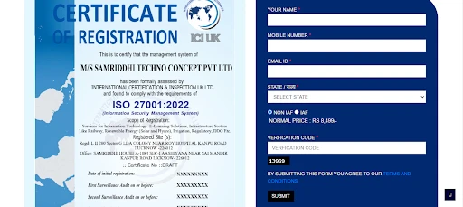 - Now, you can see an ISO 27001 Registration form appearing on the screen.