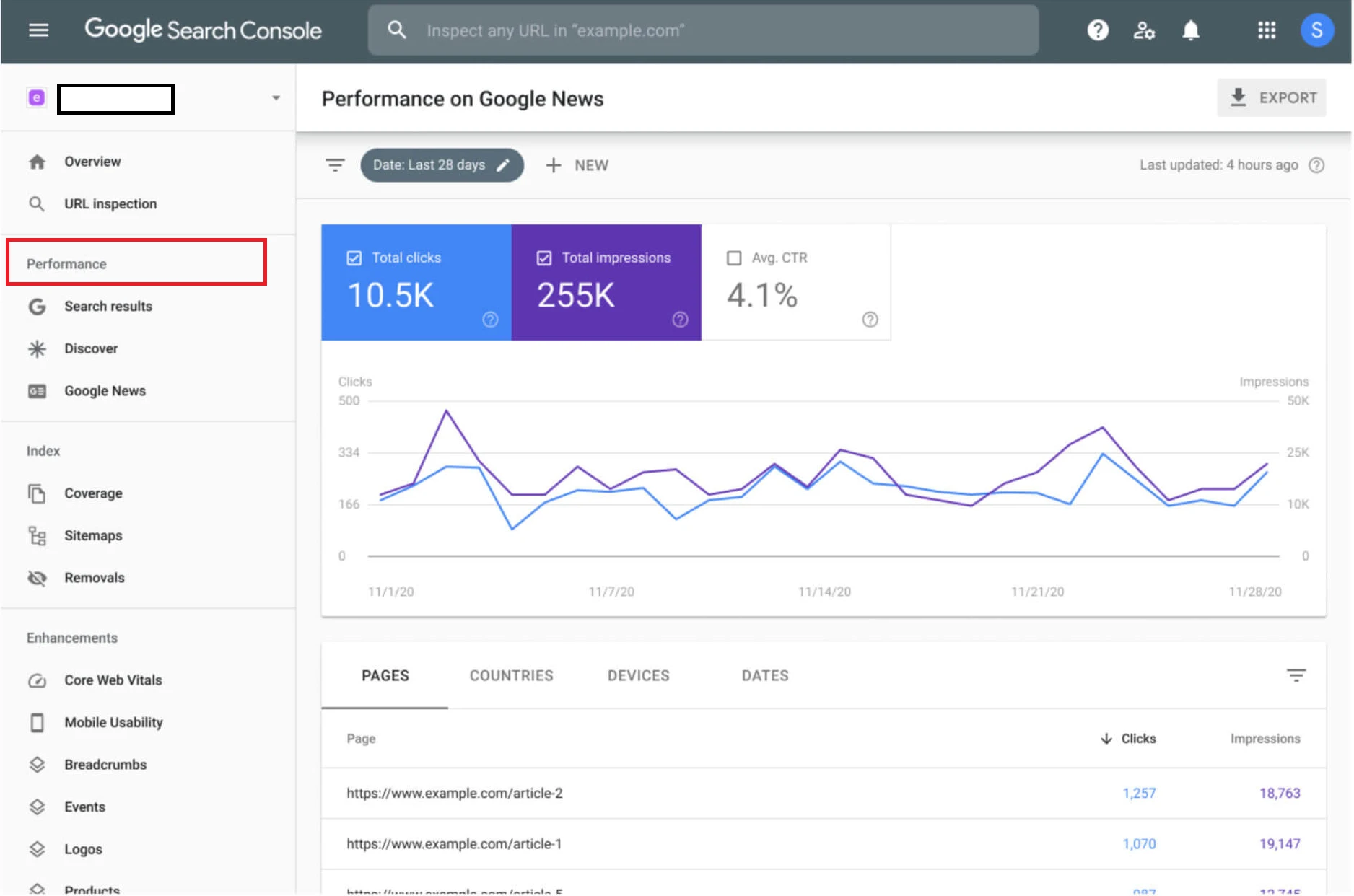 2. Then simply go to Performance > Search Results which will reveal clicks, impressions and rankings.